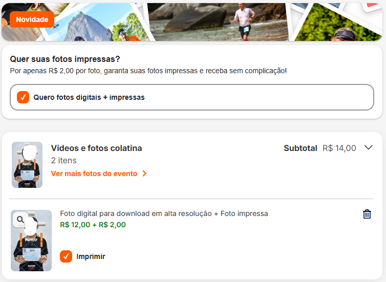 Apenas com a Foto Digital: O serviço de impressão é um opcional. Não é possível comprar a foto impressa sem adquirir a versão digital.