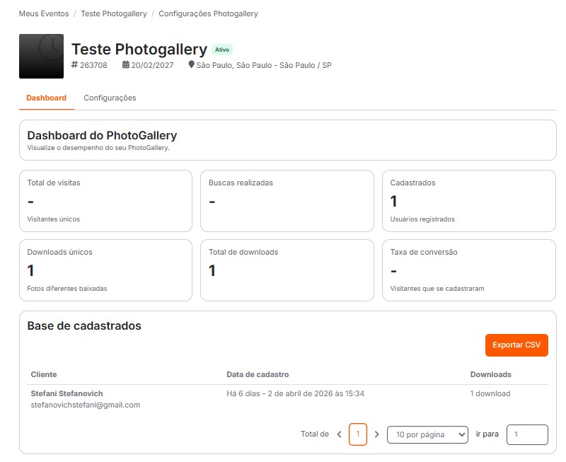 Total de Visitas: Quantas pessoas acessaram sua galeria.