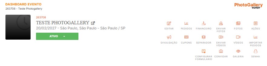 Crie seu Evento: Acesse seu painel e crie um novo evento no modelo PhotoGallery.