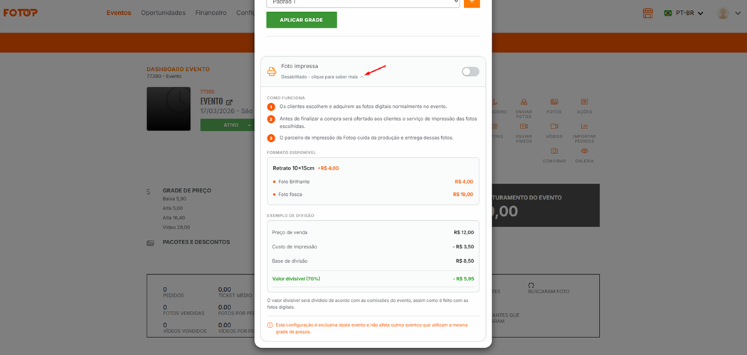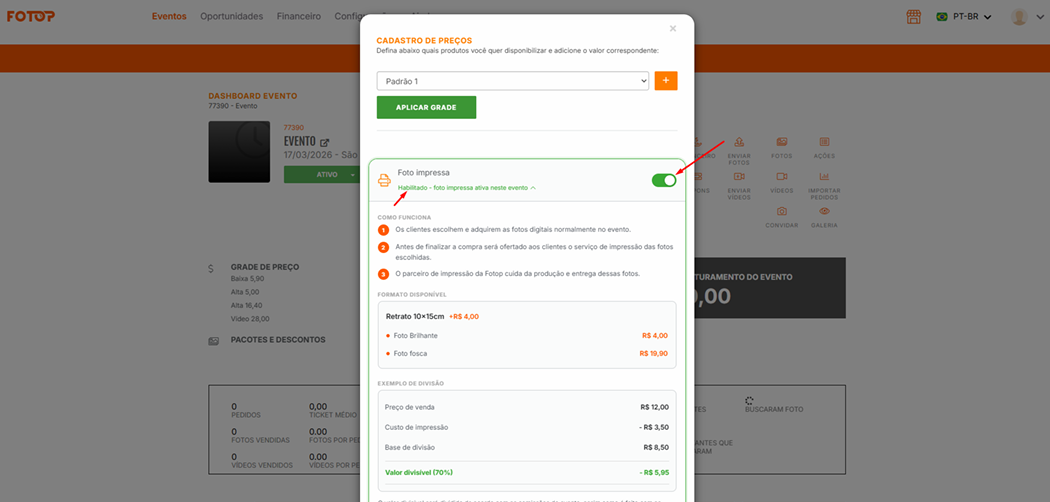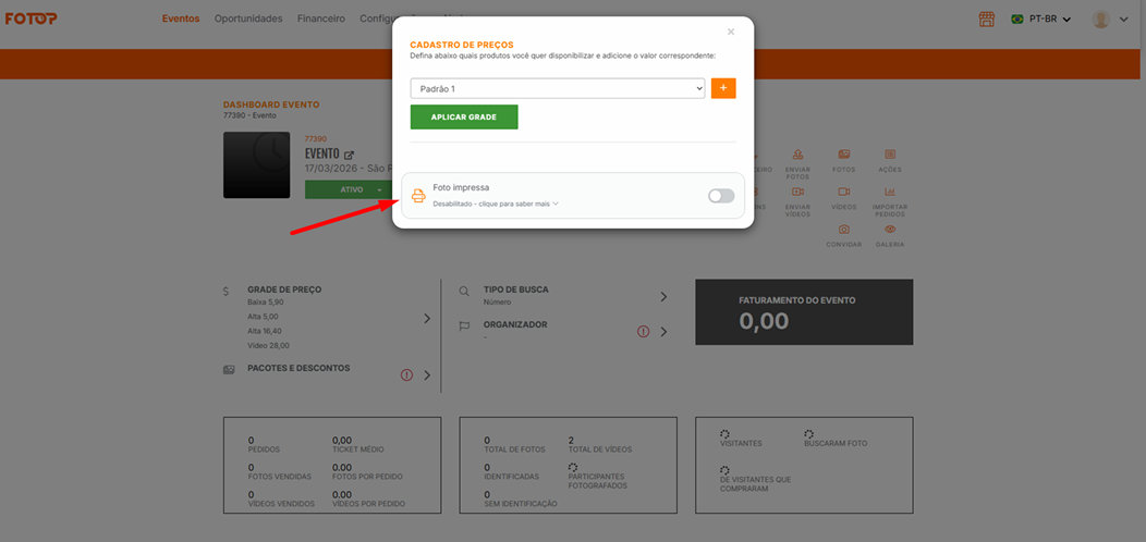 Reative em Grade de Preço → Foto Impressa → Ativar