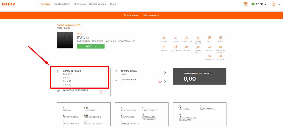 - Painel → Eventos →