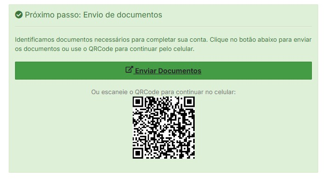 4. Pronto, agora aguarde a análise da documentação enviada (Pode levar até 48h) e, assim que aprovada, você já poderá realizar movimentações normalmente em seu painel!