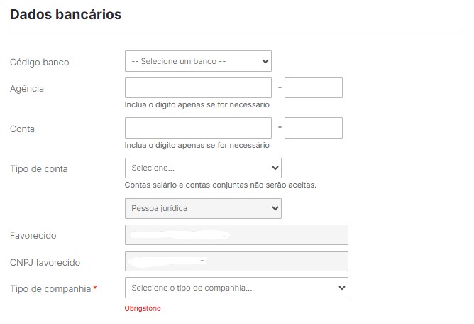 - Acesse o item do menu superior Configurações -> Dados bancários